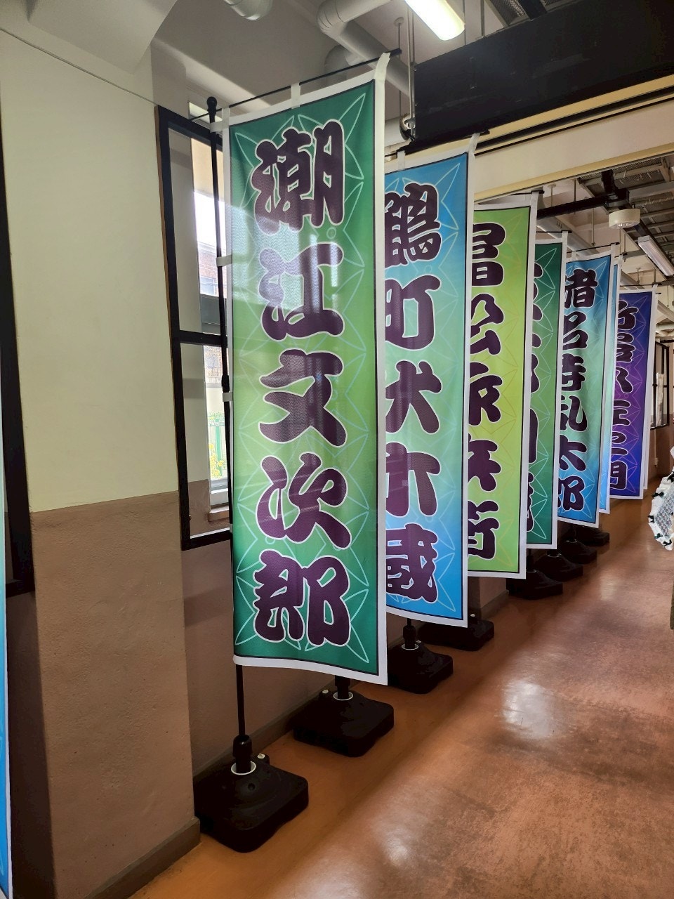 尼崎について一番最初に向かったのがこのギャラリー。阪神尼崎駅から徒歩3分ほどにあるギャラリーでは「本になった原画の世界展」を期間限定で行っており、尼子惣兵衛先生の原画作品が観ることができました。購買部では、忍たま乱太郎の原画を用いられたキャラクターグッズが多く販売されていました。ギャラリーの廊下には尼崎の地名から名付けられたキャラクターの名前の幟が並べられており、フォトスポットになっていました✨また、ギャラリーの外をみると忍たま使用のレンタカーが!?(いつか乗りたいな🚙)