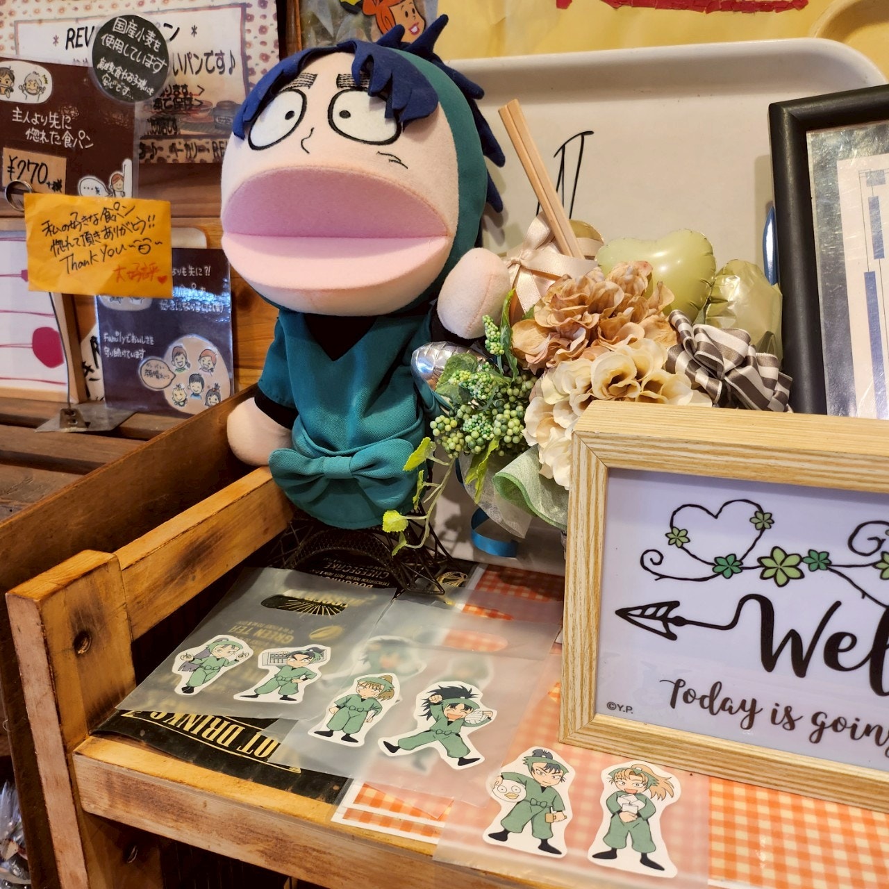 2日目の最初に向かったのは、ベーカリーレーブ。ここのパン屋さんは尼崎市七松にあり、忍者モチーフのパンが売られており聖地の一つになっています。こちらもptに書いた場所の一つで、店内は忍たまグッズとSUPER EIGHTのグッズが沢山飾られていました。私は「焙烙火矢 豚まん」「にんじゃぱん」「手裏剣ラスク」「忍び巻き ポテトサラダまき」「焼きドーナツ(戦輪ドーナツ)」を購入。どれもとても美味しく、次回尼崎に来訪した時も絶対行きたい!