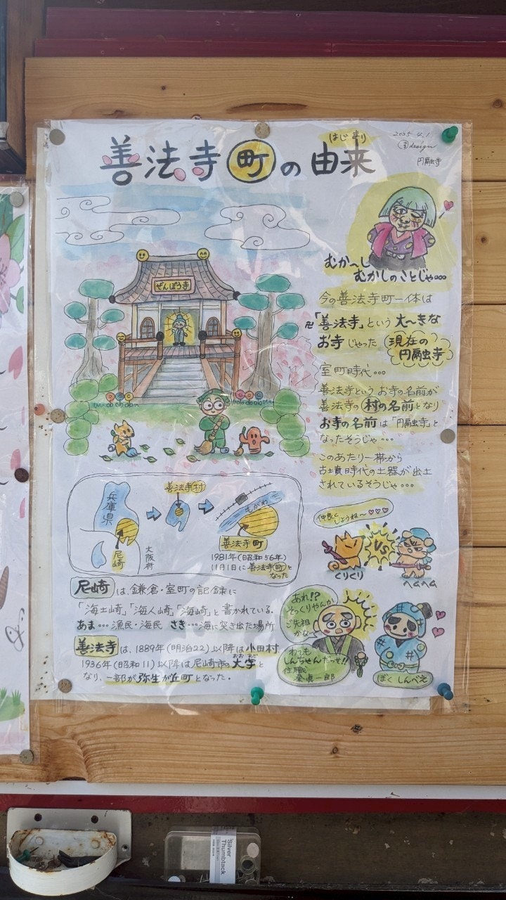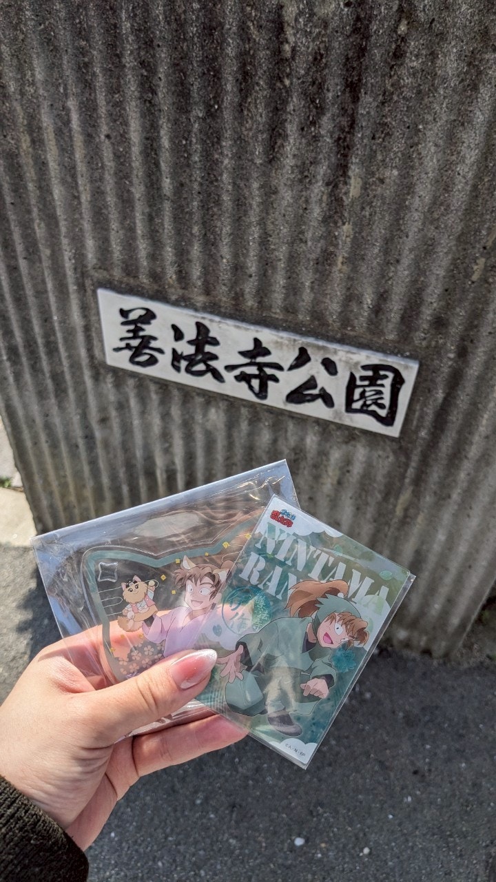 揚げ豆腐を食べたのちに向かったのは、善法寺公園です。写真が上手に撮れたのがあまりなく実態が分かりづらいですが、いわゆる地域の公園です。掲示板には由来がイラスト付きで説明されており、ここでも忍たまが地域に愛されているのが伝わりました。善法寺公園の近くには善法寺橋という橋もあり写真スポットになっていました。巡った当時はまだ踏み込んでいなかったミュージカル忍たまのキャストさんも巡礼した場所だったぽく、この情報を知った上でもう一回行きたいものです笑